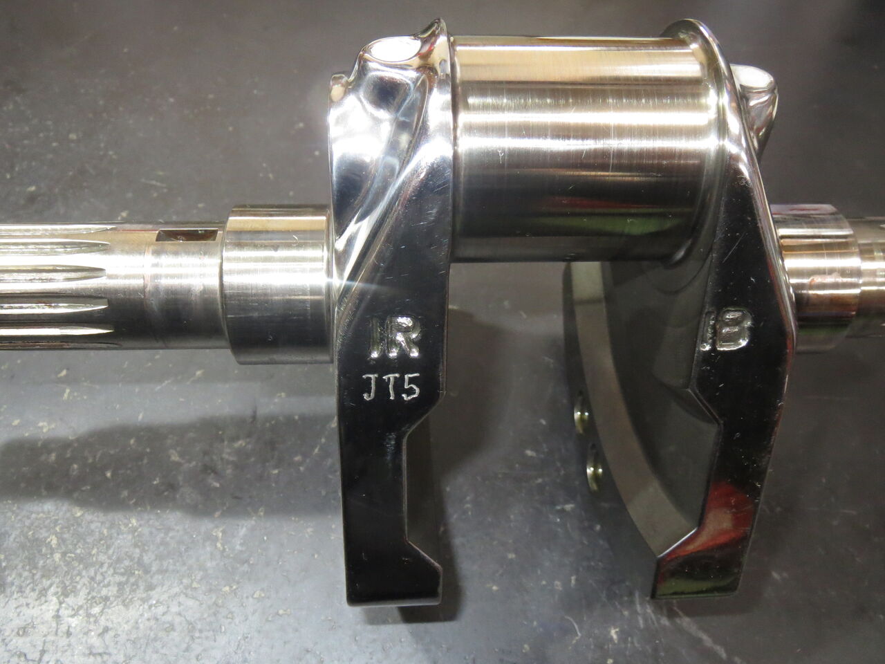例えばこのクランクにはJT5と記されています。これはジェームス・トスランドというライダー用エンジンの5号機ということです。おそらくかなりの数量のエンジンをハンドリングしていたのでしょう。部品が入れ替わったりしないようにと言う事だと思います。そうしないと距離の管理にも支障が出ますし。でも部品の中にはNHと記されている部品も一つだけ混じっていました。(笑)今後オーバーホールの様子をかいつまんで紹介していきたいと思います。
