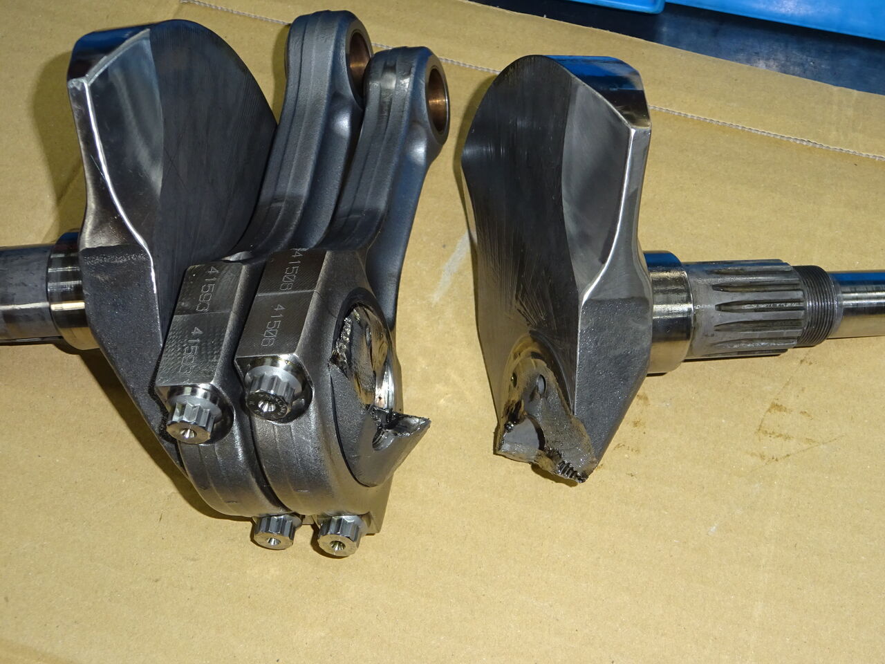 あって欲しくない事ではありますが、サーキット専用車でレースを目的としているとたまにはこんなことが起こります。クランクシャフトは定期交換部品ではないので、クランクシャフトが折損するタイミングは予想がつきません。運が悪かったと思うしかないのですが、折れない個体は折れないのでクランクシャフトそのものが何かの問題を抱えていた可能性も否定できません。でもそれは目視では判別できません。