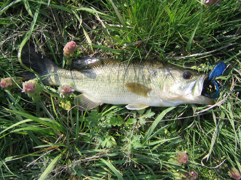 筑波へスポーツ走行に行ったついでに、茨城の野池に行ってみました。気温こそ暖かかったのですがちょっと風が強く、そんなに水温は上がっていなかったのかもしれません。それでもとりあえず2匹ゲットしました。画像はそのうちの1匹ですが、大きさは小さ目ですね。水深が浅いところなので、私の使っているタックルでは、このくらいの大きさだと合わせと同時にサカナが手元まで吹っ飛んできます。