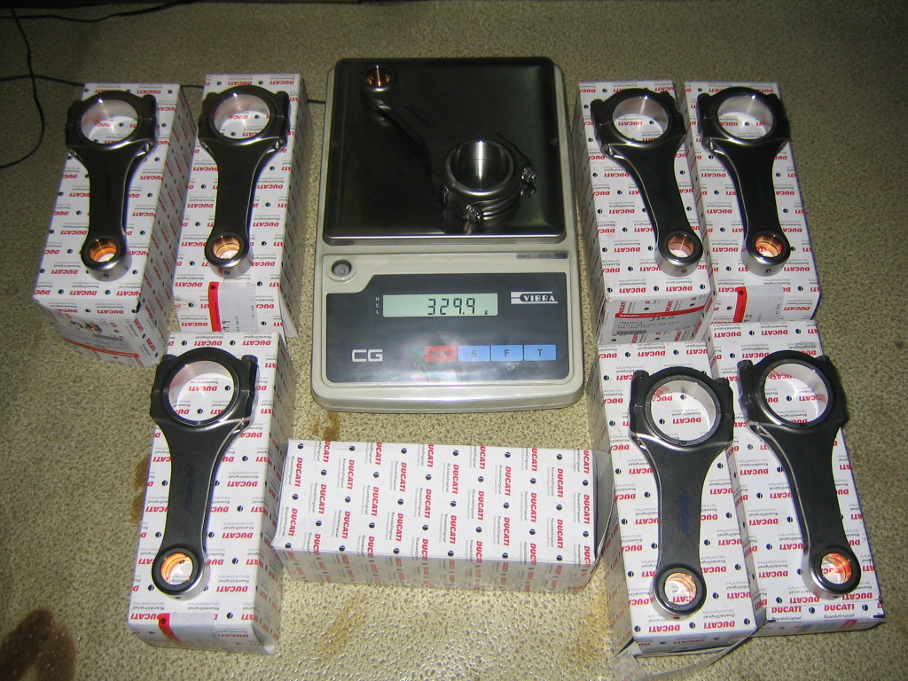 これは996RS01のチタンコンロッドですが、TFDには現在これだけの在庫があるのでそれぞれの重量を計測し、組み合わせのペアを決定します。