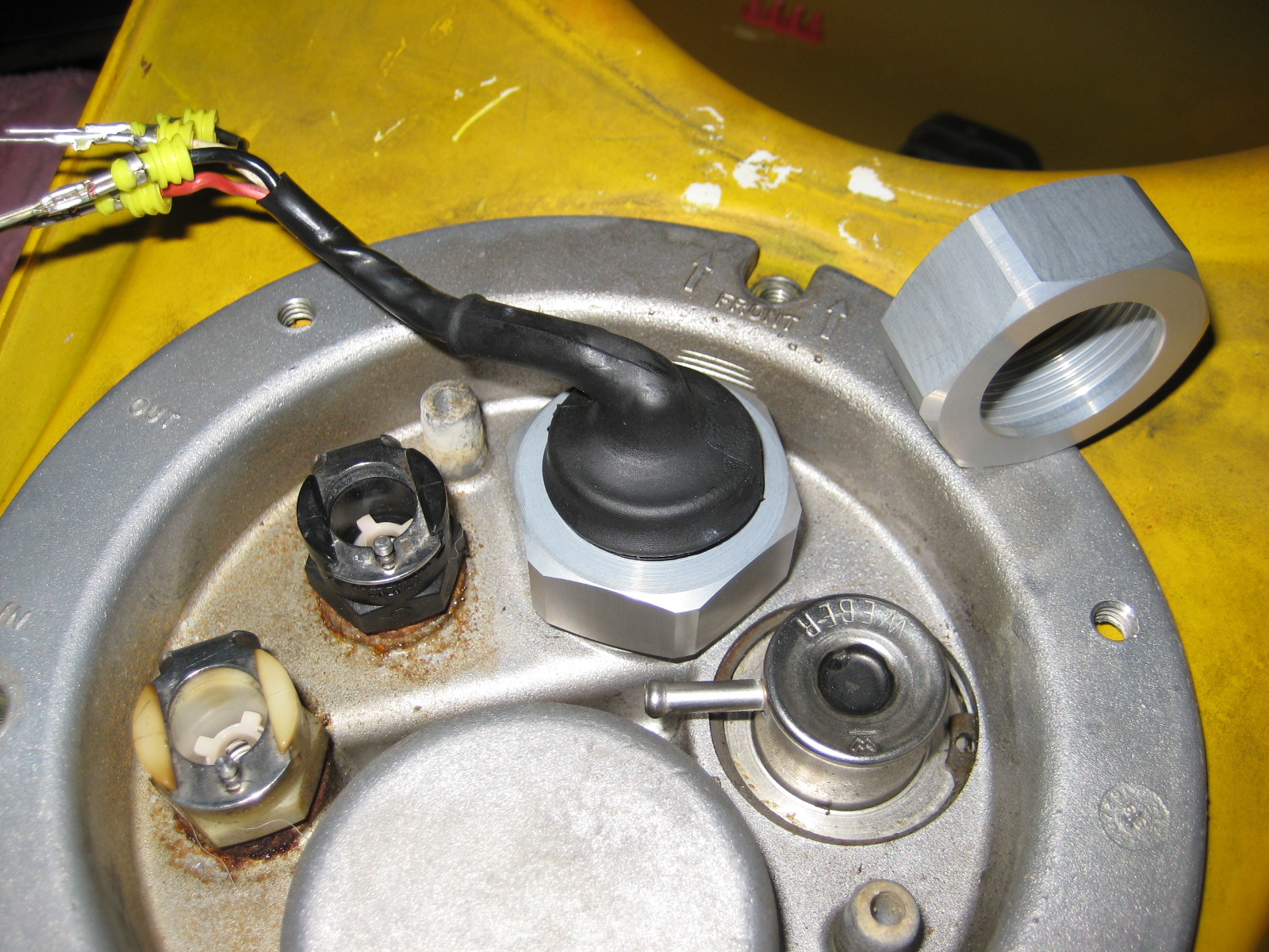 画像はそれを装着したところですが、ナットのみの交換なのでポンプフランジを外す必要がありません。その代わり配線のカプラーを一度分解しないとナットが通らないのですが、これは致し方ないところでしょう。傍らに置いてあるのが部品単体です。造った数が少なく、材料も良い物を使ったので価格はちょっと割高で¥6,300-ですが、部品を丸ごと交換するコストの半値以下ですし、作業の手間も省けます。ご興味のある方はお問い合わせください。