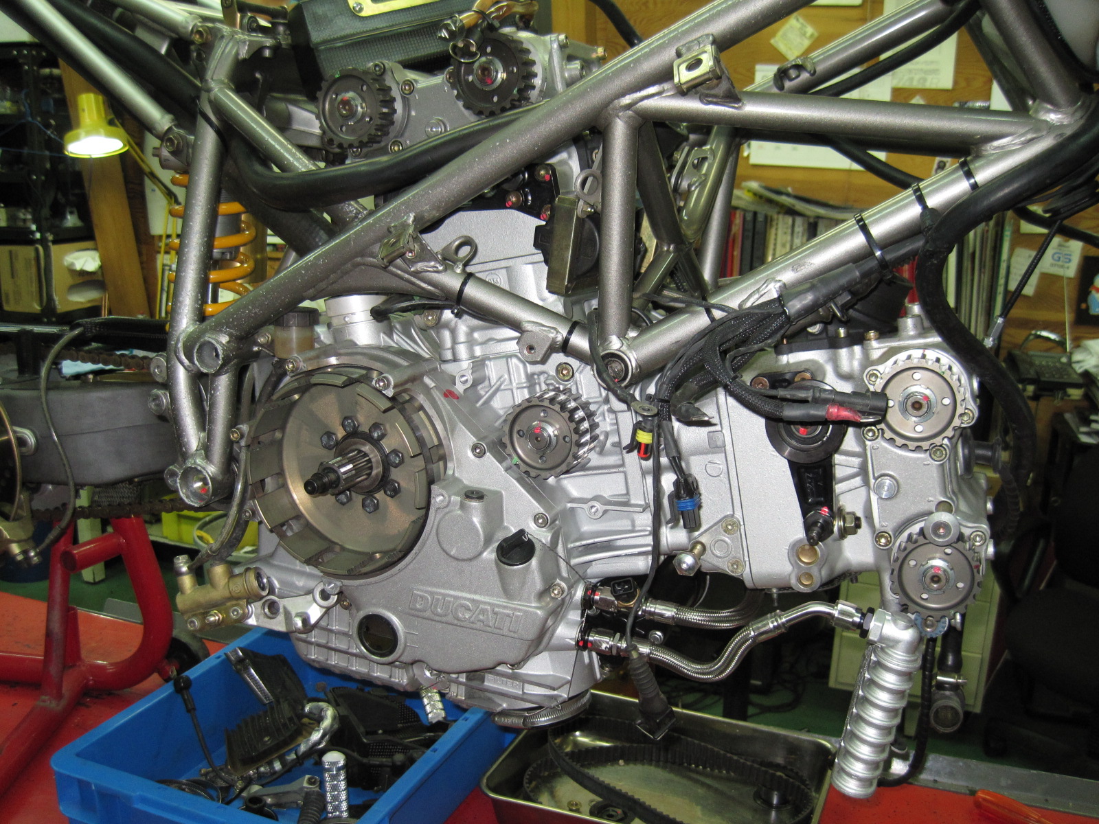 今回の転倒は右側に倒れて滑走しただけだったので大したダメージはなかったのですが、クラベルの中に突っ込んだので問題となるのは各部に侵入した小石です。これを完全に取り除かないと安心して走れません。小石を完全に取り除くのはかなり難しく、取り除いたつもりでも思わぬ場所に小石が挟まったままになって残っている事が間々あります。特にRSのようにタイミングベルトがカバーされていない場合、走行中に振動で落下した小石がタイミングベルトに挟まってトラブルを誘発する事があります。昔全日本でレースをしていた時にもこうしたトラブルの経験がありました。