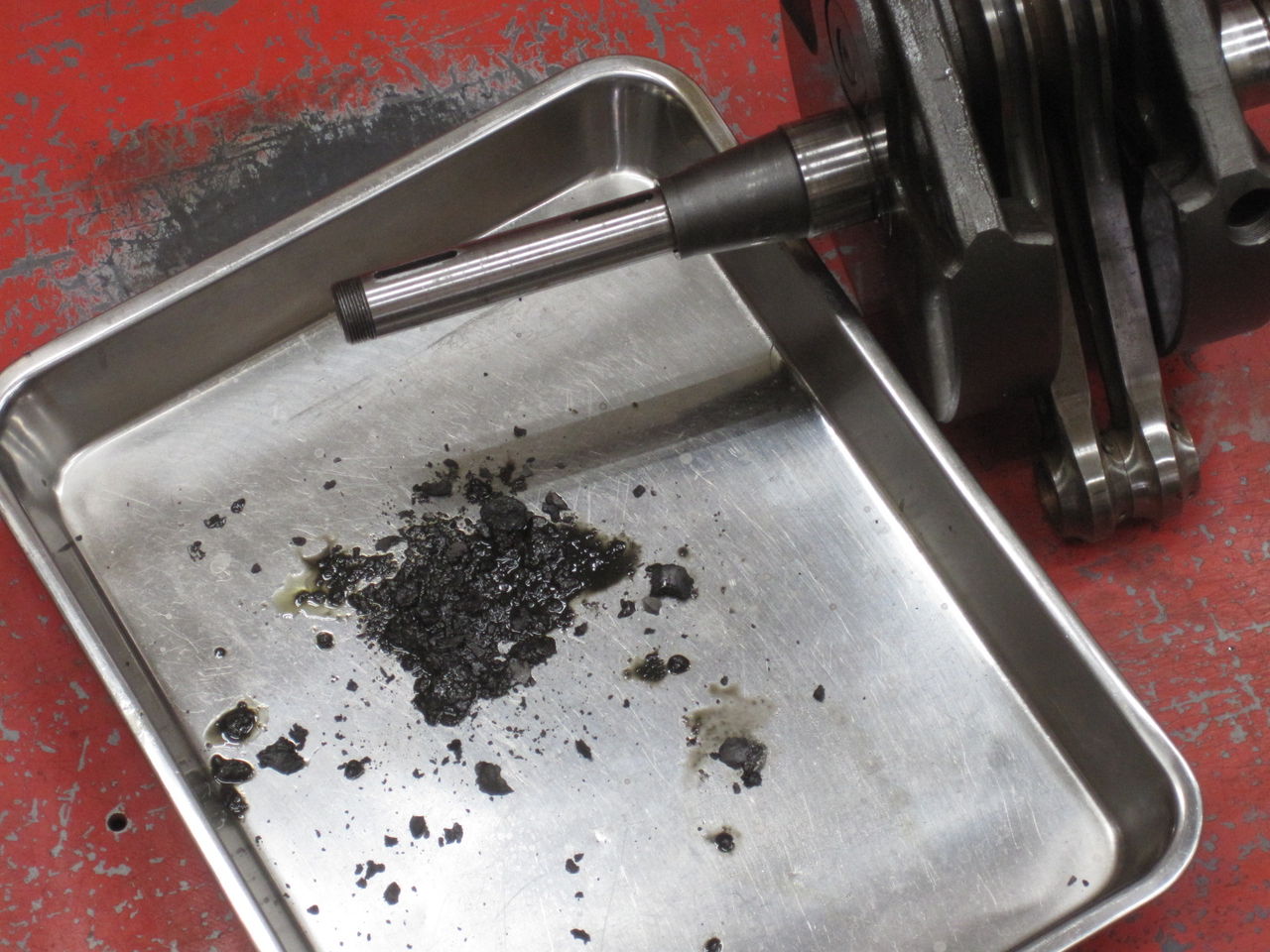 溜まった異物を取り出すと、こんな有様です。重量を測ってみると約15グラムありました。基本的にベベルのエンジンのオイルフィルターは申し訳程度のもので、実質的には無いも同然ですから、このシステムが最後の砦とも言えますね。