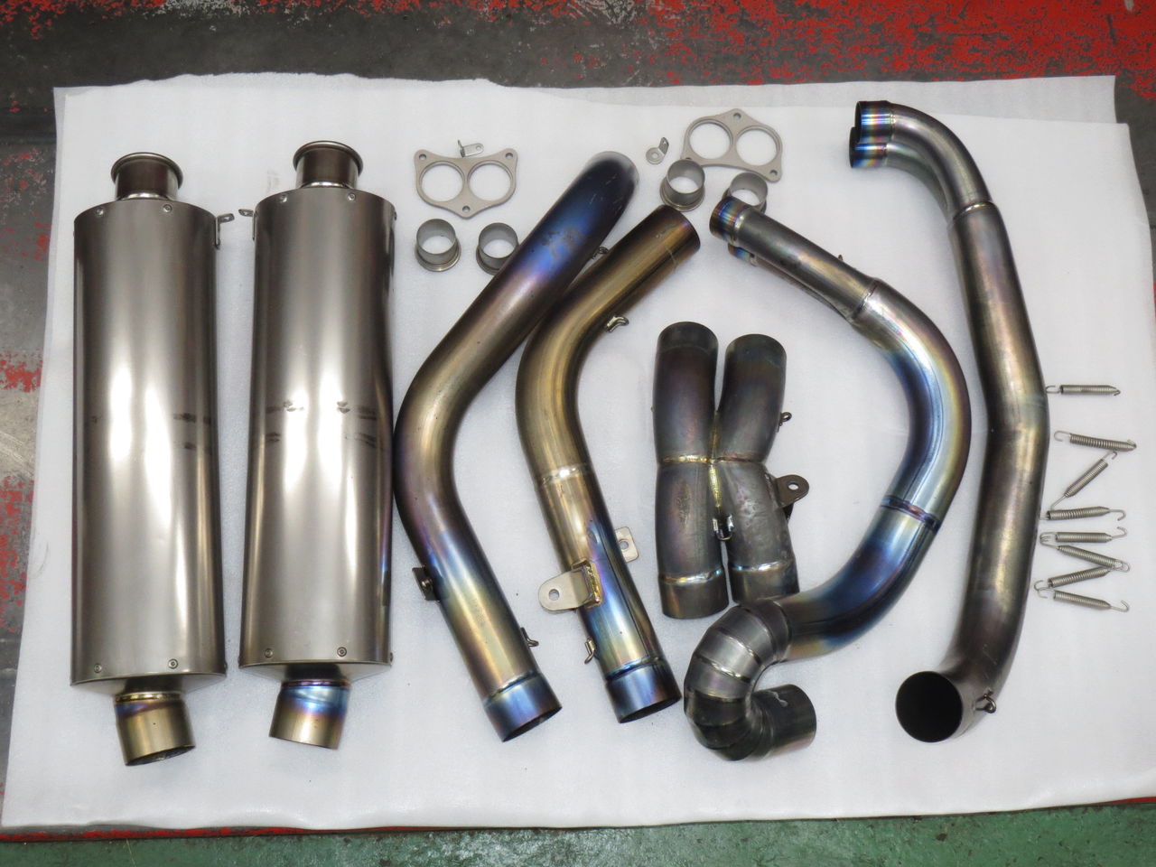 デスモクアトロエンジン用のフルエキが入荷しました。モトコルセ製、φ54mmです。価格は¥100,000-(税別)です。状態を確認していただいたうえでご検討よろしくお願いします。