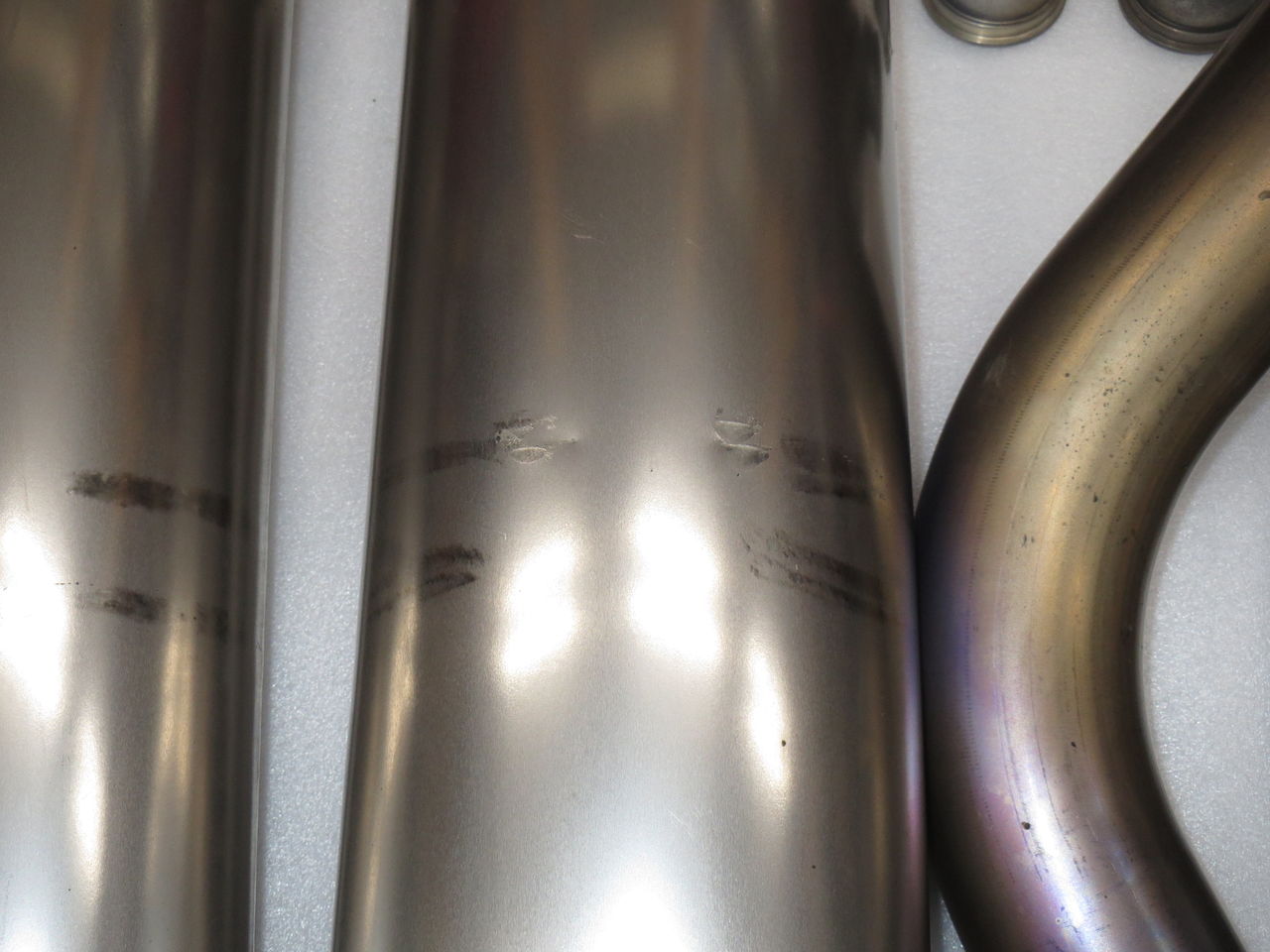 こちらはフロントパイプの下側です。オイルキャッチアンダーカウルに接触していたようでその痕跡が残っています。