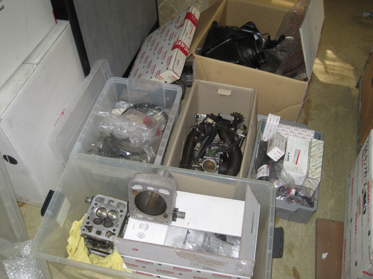 また、かなりの量の純正新品部品も付属していました。例えば新品のアッパーカウル、サイドカウル左右、ラジエーター、クランクケース等、枚挙にいとまがありません。レストアに際してはこの他にも膨大な数の新品部品を使用しましたが、その全てをここで紹介することは不可能なのでそれらについてはレストア中の記事の中で紹介させていただきます。